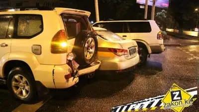 Авария произошла около трех часов ночи. Со слов очевидцев, по Сейфуллина на север, перед улицей Толе би на перекрестке стоял Toyota Land Cruiser Prado и ждал зеленого сигнала светофора. В Prado на полном ходу въехал Mitsubishi Montero.