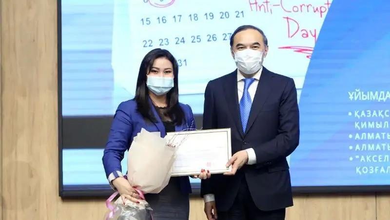 От имени акима Алматы грамоты вручил заместитель акима города Ержан Бабакумаров. От имени председателя Агентства по противодействию коррупции – руководитель Антикоррупционной службы Алматы Мурат Ахметов.