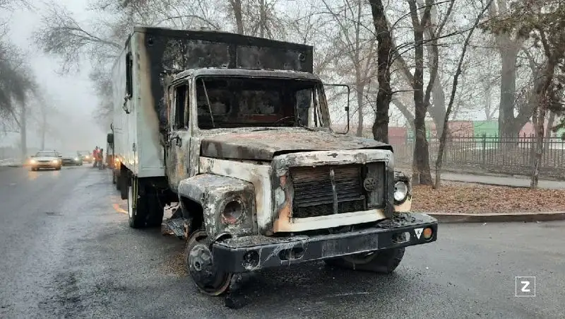 Во время беспорядков в Алматы были сожжены и разбиты 33 спецмашины, передает Zakon.kz.