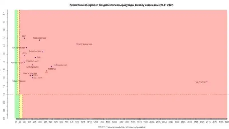 Согласно матрице оценки эпидемиологической ситуации в регионах Казахстана на 20 января 2022 года,