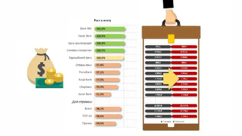 Среди крупнейших банков — держателей депозитов в РК лидер месячного роста — Bank RBK: плюс 1%, до 764,4 млрд тг. Заметим, планомерное наращивание депозитной базы банка — устойчивый тренд, что говорит о стабильности фининститута.
