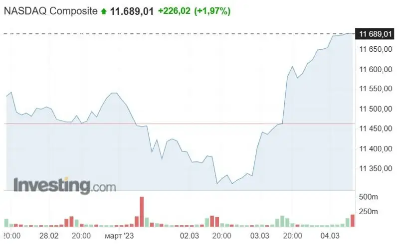 В понедельник 6 марта Nasdaq Composite к 11.00 времени Нью-Йорка взлетел выше 11 800 пунктов. Однако торговую сессию индекс завершил в умеренном минусе, снизившись до 11 675,74 пункта (-0,11% или -13,27 пункта).