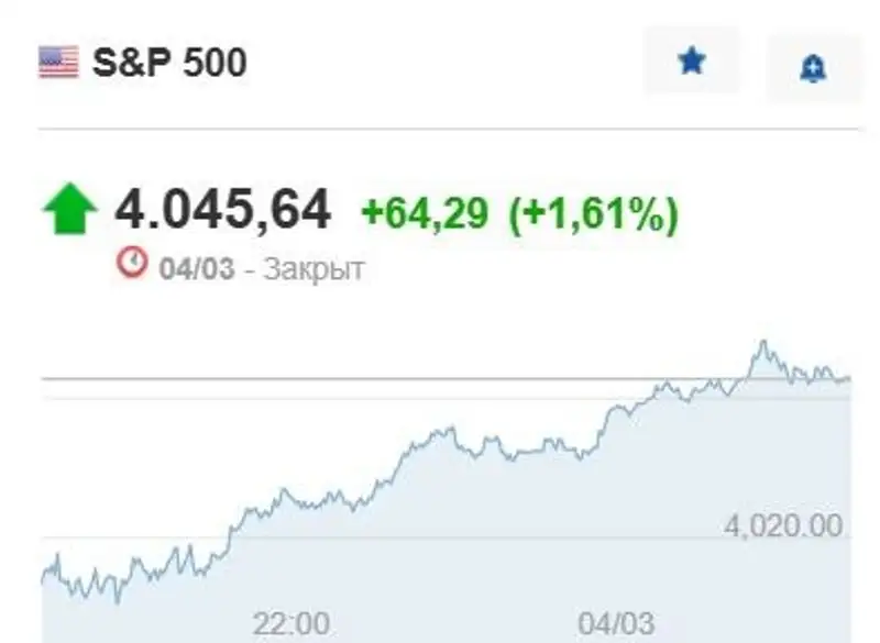 Индекс S&P 500 вырос на 1,61%. Рост за неделю составил 1,90%, или 75,6 пункта, до 4 045,64 пункта. Индекс пересек психологически важную отметку в 4 000 пунктов.