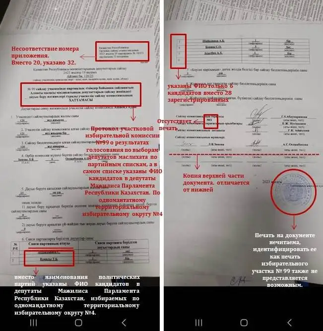 Накануне в СМИ появились фото якобы протокола участковой избирательной комиссии о результатах голосования по выборам депутатов Мажилиса Парламента Республики Казахстан, избираемых по одномандатному территориальному избирательному округу №4 по избирательному участку №99.