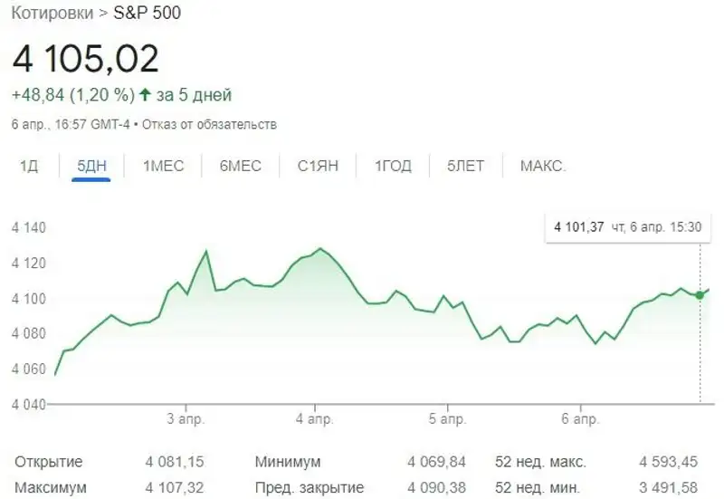 Индекс S&P 500 поднялся на 0,36% (-4,29 пункта, или -0,10% за неделю)