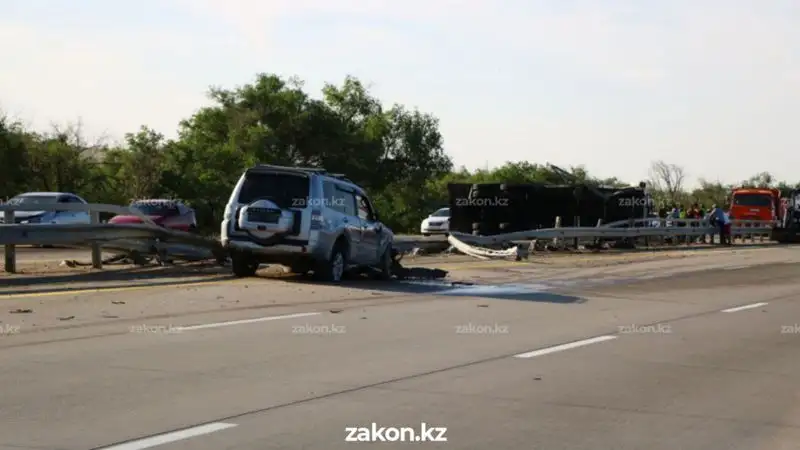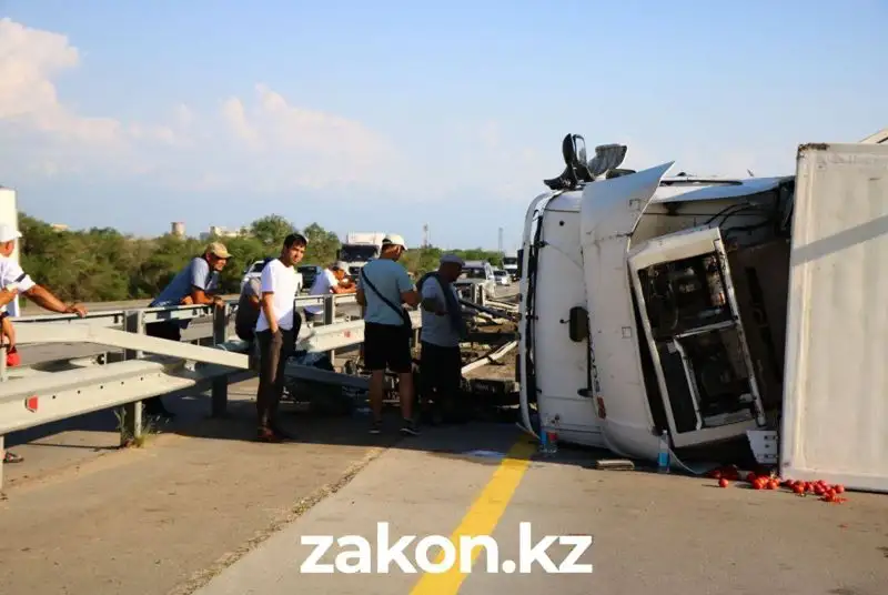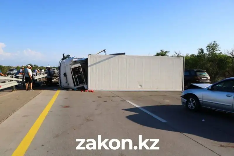 Лопнувшее колесо грузовика стало причиной массового ДТП на Капчагайской трассе