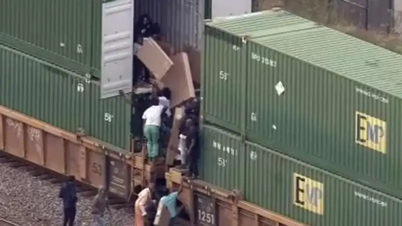 Как передает CBS NEWS, 11 октября десятки мародеров успели опустошить несколько грузовых вагонов. В них перевозилась техника и аппаратура. Сообщается, что полиция прибыла на место только спустя час. В итоге смогли задержать только шестерых.