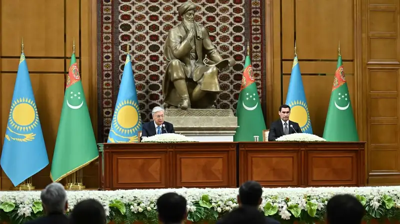 Президент Сердар Бердымухамедов на брифинге рассказал о текущих и перспективных направлениях сотрудничества и отметил конструктивный характер туркменско-казахского диалога