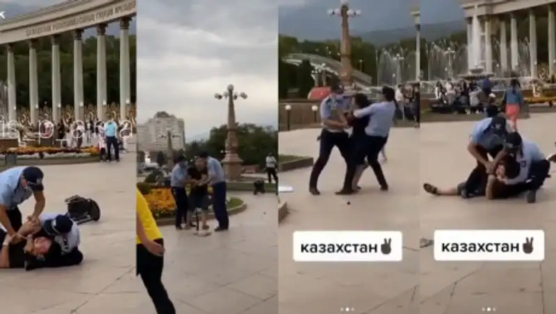 В алматинских соцсетях распространяется видео, на котором двое полицейских задерживают мужчину, сообщает zakon.kz.