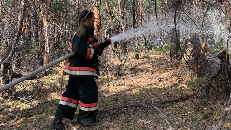 Тушение пожара продолжается также на 8 участках лесной зоны (5 очагов в районе села Баганалы (кромка 15 км), два очага в районе села Лесное (кромка 5 км), один очаг в селе Аманкарагай (кромка 2 км).
