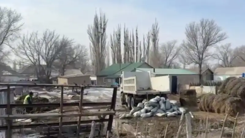 Местные исполнительные органы обратились за помощью к дорожникам региона. Специалисты "КазАвтоЖола" приносят в село песчано-гравийные смеси и мешки с песком.