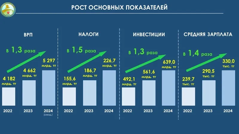 "В целом за последние два года мы достигли значительного роста по важным экономическим показателям. Аграрный сектор показал увеличение на 22,1%, промышленность выросла на 2,3%, строительная отрасль на 24,9%, торговля на 10,9%, транспорт на 6,3%. Объем инвестиций вырос на 11,7%, что свидетельствует о динамичном развитии региона", подчеркнул глава региона.