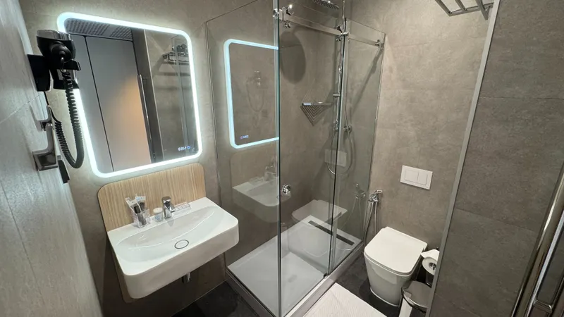 Отель площадью 900 кв. м включает 31 номер, оборудованный отдельными душевыми и санузлами, спутниковым телевидением и Wi-Fi. Для гостей предусмотрены чайные наборы и гигиенические комплекты – привычные стандарты городских гостиниц, теперь доступные и в дороге.