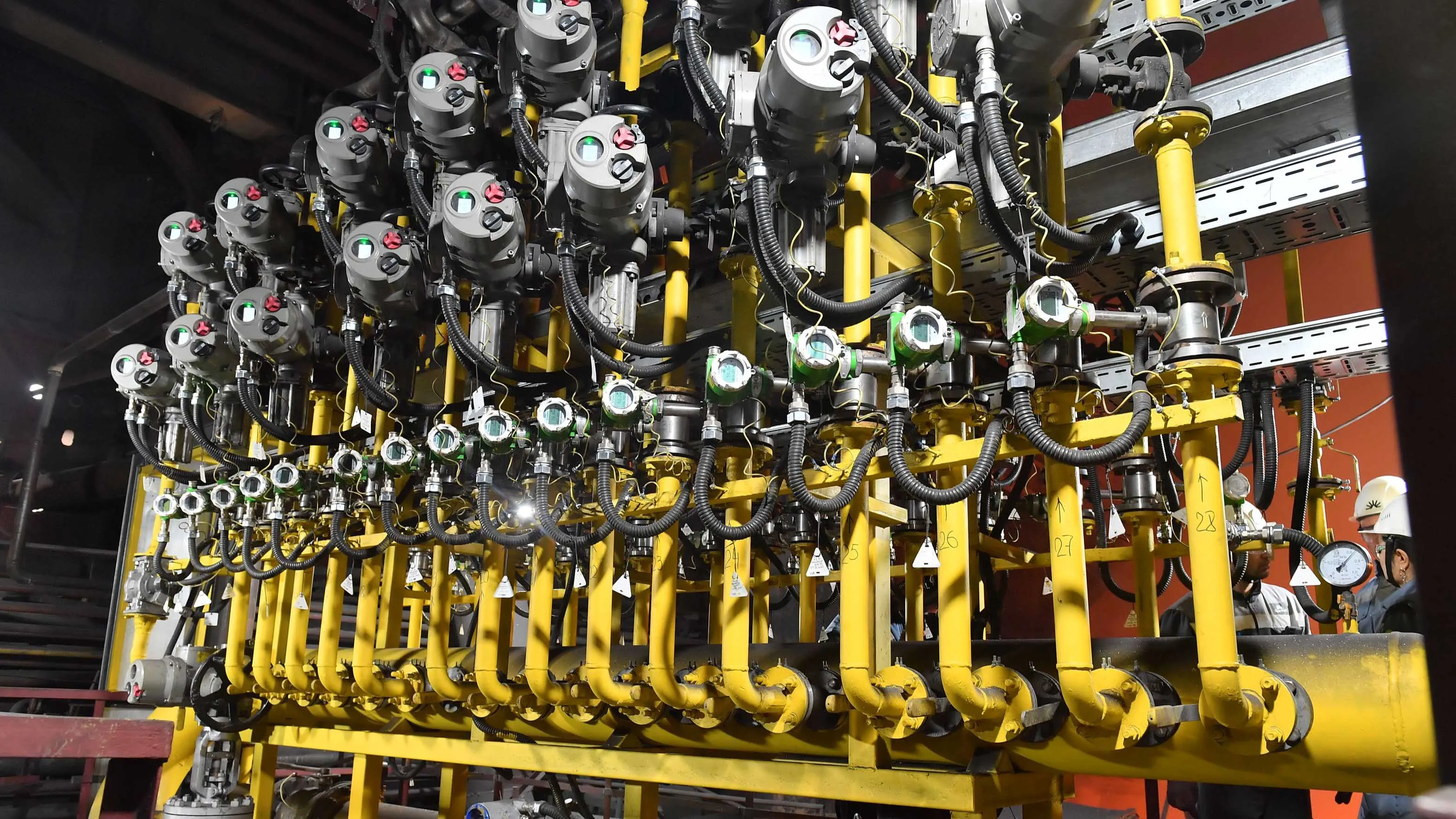 Специалисты уже наладили систему подачи. Каждый элемент требует контроля: как подается газ, как он сгорает, какие показатели фиксируют расходомеры и датчики. Современная система позволяет регулировать подачу газа на каждую фурму с помощью электрифицированных клапанов. Теперь это дает возможность точно отслеживать процесс и оперативно реагировать на изменения.