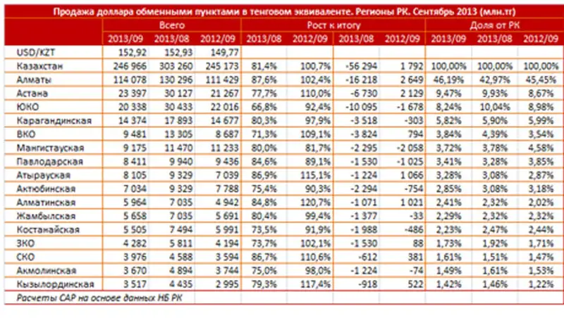 Падение спроса на доллар наблюдается во всех регионах Казахстана.