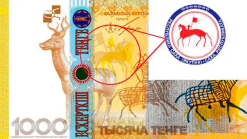 В Якутии сразу распознали в одном из изображений на казахской купюре ни много ни мало, а национальный герб республики, зарегистрированный в Государственном геральдическом реестре России. Речь идет о новой банкноте номиналом в 1000 тенге, которая была выпущена в обращение Национальным банком Казахстана с 12 декабря 2013 года, сообщает сайт Ykt.ru.