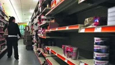 В этом супермаркете, где закупается практически весь Турксибский район, полки почти пустые. Крупные производители остановили поставки. В магазине продуктов по старым ценам остается мало. По словам продавцов, если поставщики взвинтят стоимость, через неделю и торговые сети будут вынуждены поднять цену.