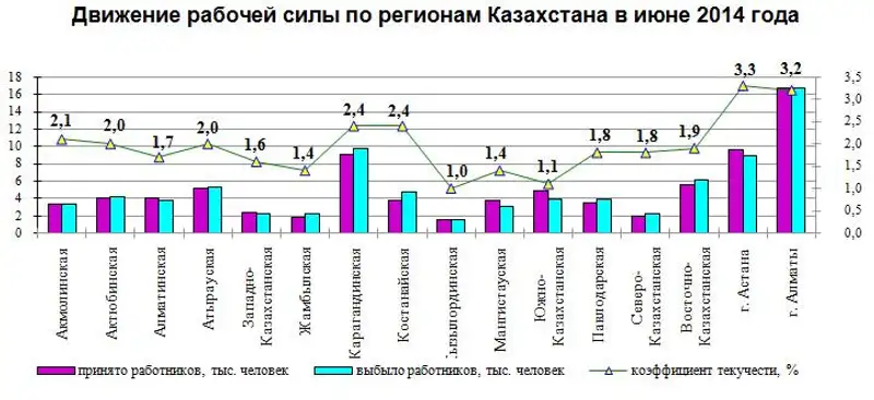 О движении рабочей силы на крупных и средних предприятиях Казахстана