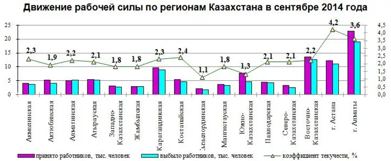 О движении рабочей силы на крупных и средних предприятиях Казахстана