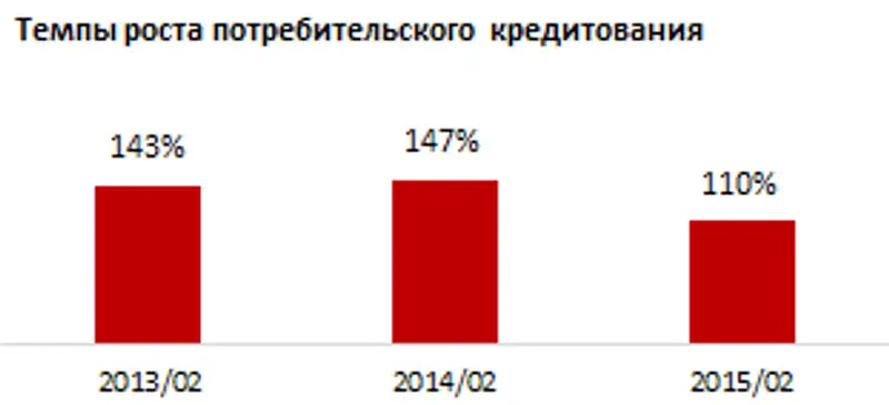 За февраль 2015 года объем потребительских займов уменьшился на 23,6