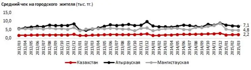 чек на городского жителя в Атырауской области с начала года снизился на 8,9%, в
