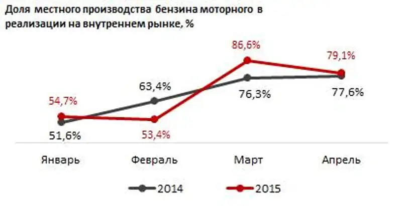 Доля отечественного бензина в потреблении по итогам месяца составила 79,1%,