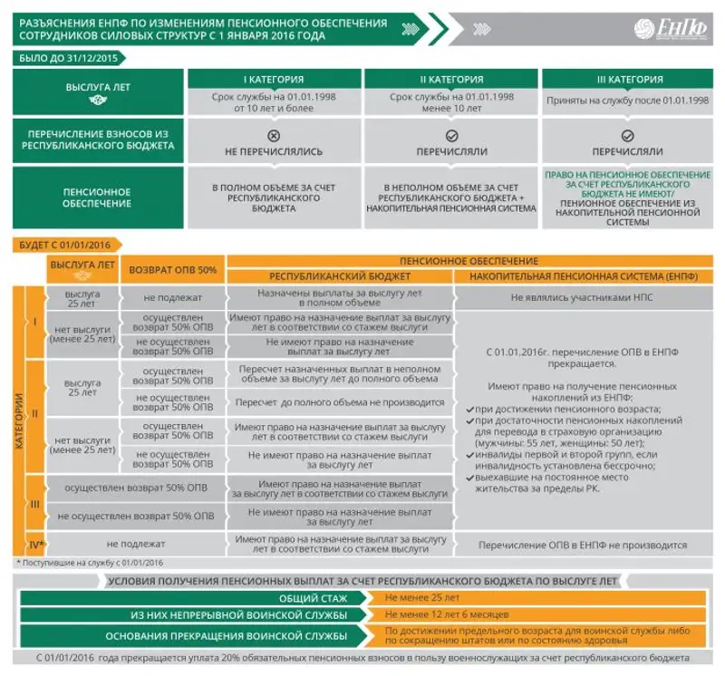 силовых структур с 1 января 2016 года, сообщает Еnpf.kz.