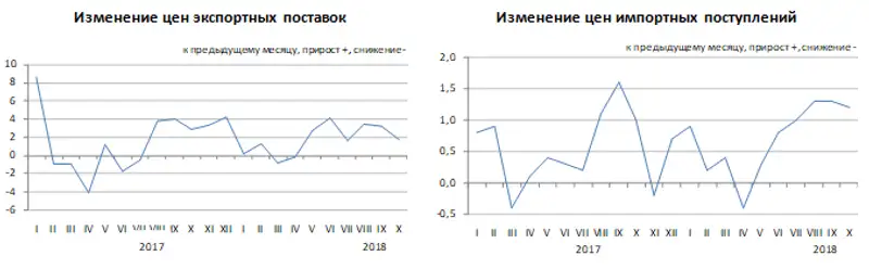 Изменение цен экспортных поставок и импортных поступлений в январе-октябре 2018 года
