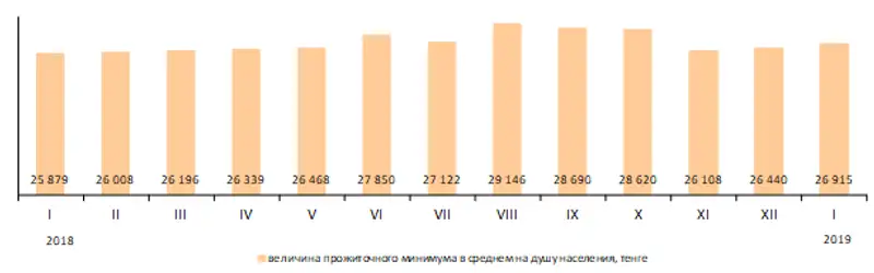 Величина прожиточного минимума в январе 2019 года составила 26 915 тенге
