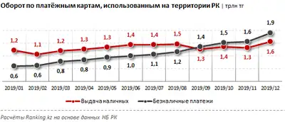 Оборот по платёжным карточкам казахстанских и иностранных эмитентов на территории РК в декабре 2019 года составил 3,5 трлн тг — на 20,3% больше, чем в ноябре.