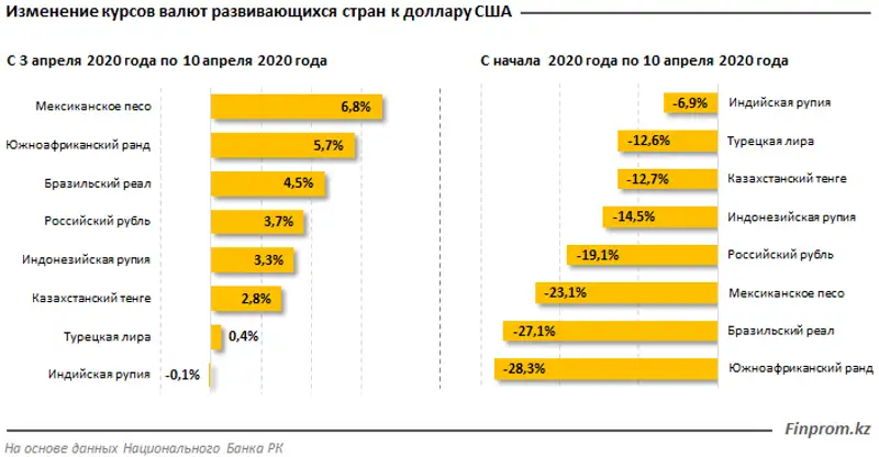 При этом с начала года казахстанский тенге потерял меньше, чем валюты других развивающихся стран, хотя и уступил индийской рупии и турецкой лире.