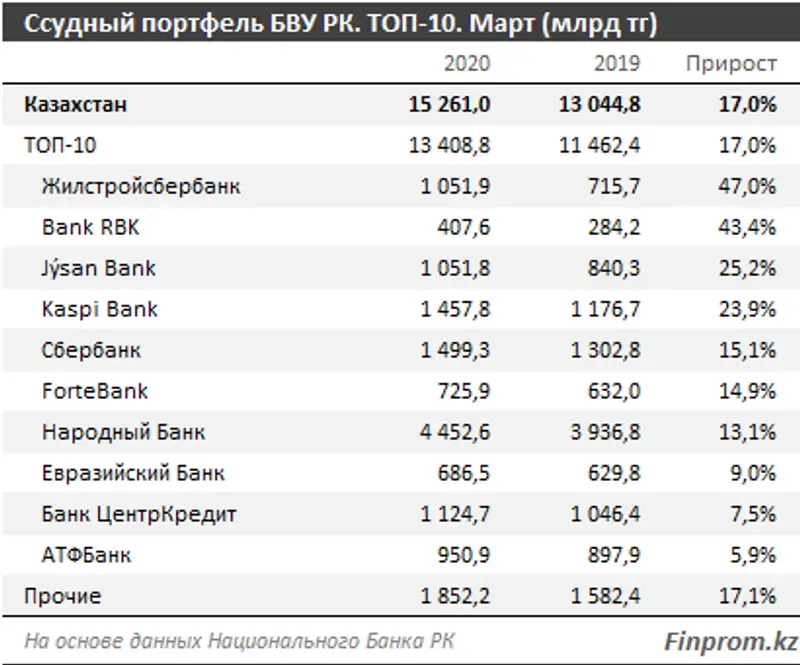 При общем росте ссудного портфеля БВУ РК на 17% за год объёмы займов Жилстройсбербанка выросли сразу на 47% — рекордный показатель среди всех крупнейших фининститутов страны.