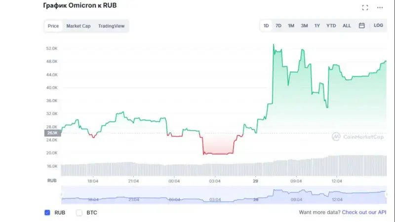26 ноября криптовалюта стоила примерно 65 долларов за монету. 29 ноября она подорожала на 960%, до 689,12 доллара, и достигла исторического максимума. В 08:30 (времени Нур-Султана) Omicron продавали за 592,06 доллара.
