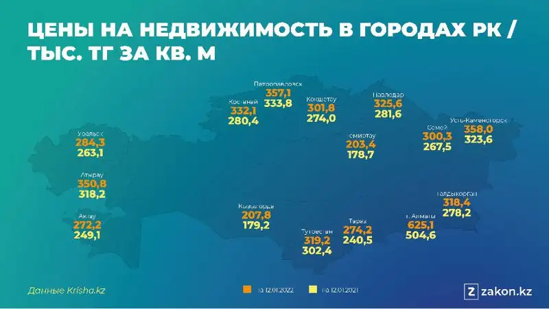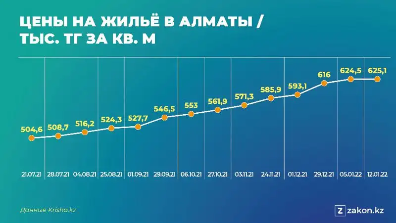 Произошедшие события нисколько не сказались на снижении цен на дома — наоборот, мы наблюдаем продолжающийся рост цен. Так, в самом пострадавшем от мародеров городе страны — Алматы — стоимость 1 кв. м жилья выросла на 1,5% с конца прошлого года, то есть менее чем за месяц. По сравнению с концом июля 2021 года рост составил ощутимые 23,9%.