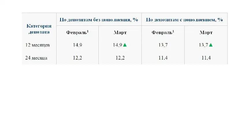 срочным депозитам на 12 месяцев на февраль и март 2022 года;