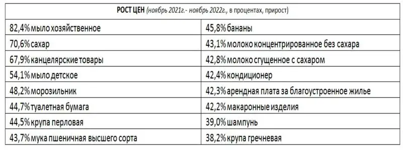 Среди продовольственных товаров огурцы подорожали на 41,5%, помидоры – на 26,1%, яйца – на 6,7%, лук репчатый – на 5,9%, рис – на 3,5%, сметана – на 3,4%, фрукты свежие – на 3%, сельдь соленая – на 2,7%, кефир – на 2,5%, молоко питьевое – на 2,4%, кондитерские изделия – на 1,6%, сыр и творог – на 1,5%. Морковь подешевела на 2,9%, сахар-песок – на 1,9%.