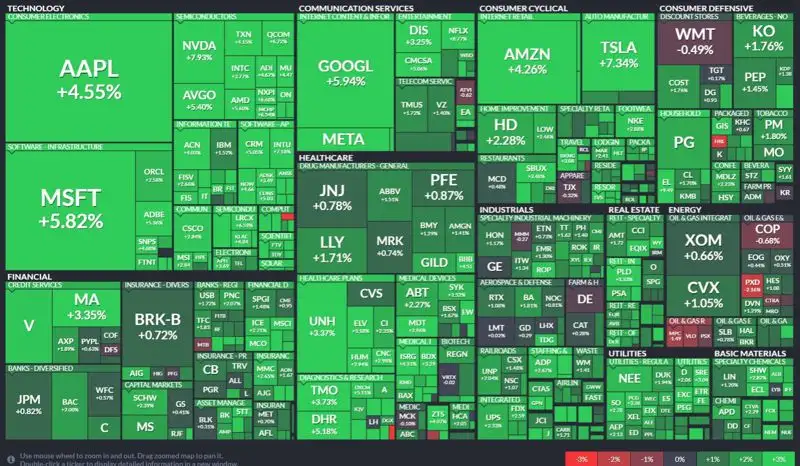 И хотя далее председатель ФРС попытался уравновесить эти слова "ястребиными" сигналами, заявив, что Федрезерву придется поднять ставку выше, чем можно было ожидать несколько месяцев назад, и дал понять, что вопрос о снижении ставки на данный момент неактуален, рынок отреагировал бурным ростом. Индексы буквально за час рванули вверх и по итогам дня рост составил 2,2-4,4%.