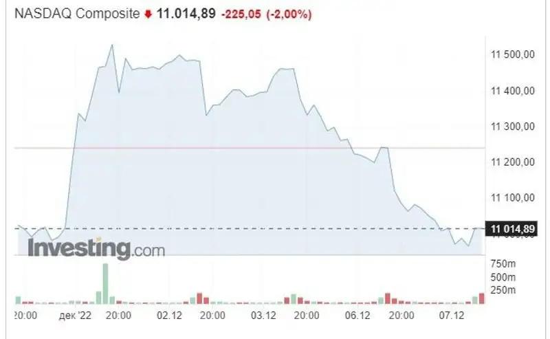Не стал радужным и вторник, 6 декабря, для фондового рынка. Биржевые индексы американского рынка снизились еще на 1-2%. У инвесторов растут опасения о наступлении рецессии в экономике США.