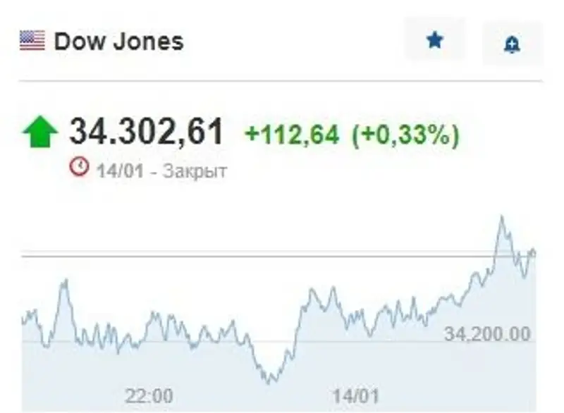Индекс Dow Jones Industrial Average в пятницу вырос на 111,64 пункта (+0,33%) и составил 34 302,61 пункта.