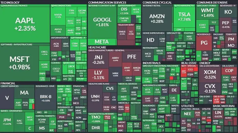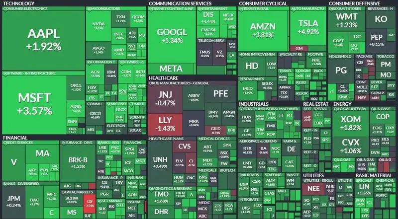 Dow Jones Industrial Average вырос на 254,07 пункта, или на 0,76%, до 33629,56 пункта, S&P 500 прибавил 47,2 пункта, или 1,19%, достигнув 4019,81 пункта, а Nasdaq Composite поднялся на 223,98 пункта, или на 2,01%, до 11364,41 пункта.
