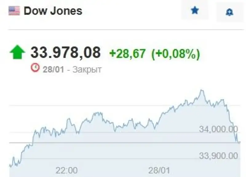 Индекс Dow Jones Industrial Average увеличился на 28,67 пункта (0,08%) и составил 33978,08 пункта.