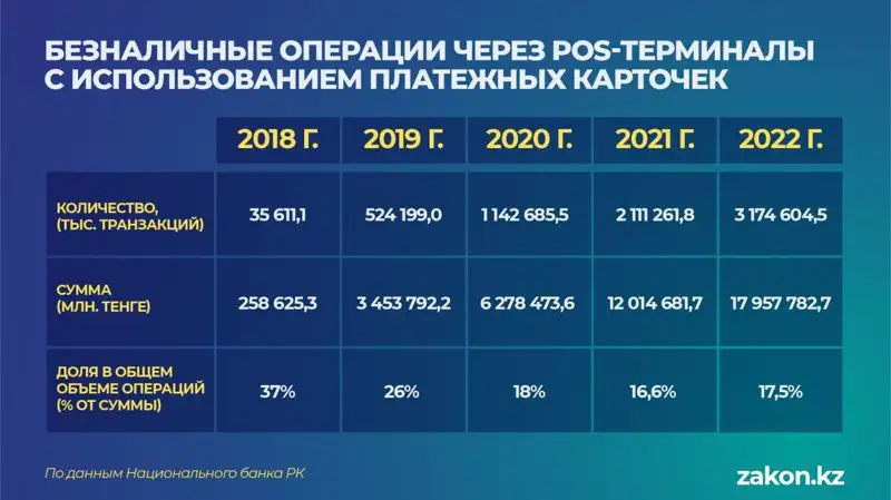 Объем безналичных карточных операций в Казахстане превысил 100 трлн тенге в 2022 году