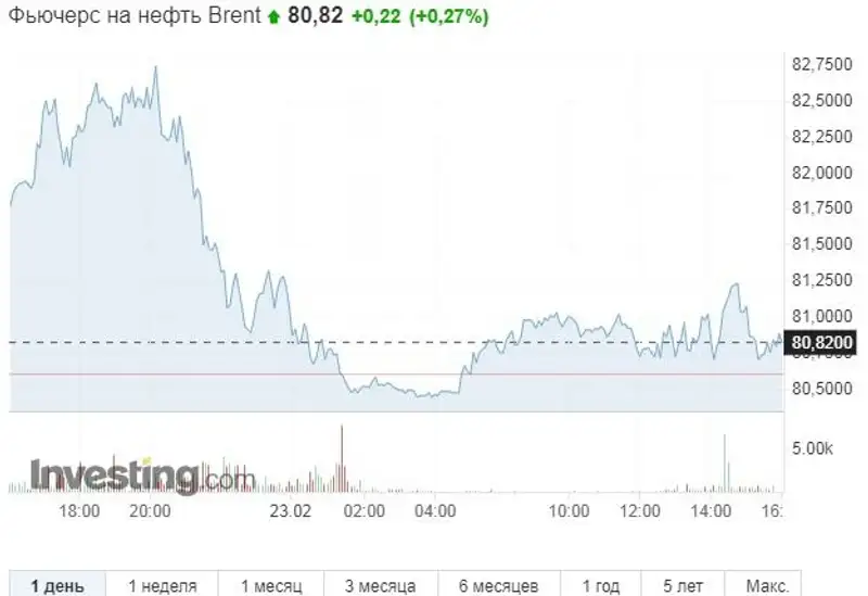 В четверг, 23 февраля, бочка черного золота марки Brent торговалась по 80,82 доллара, хотя еще в начале недели, 20 февраля, трейдеры просили за нее 84,07 доллара. Причиной падения нефтяных котировок стало озвученное в минувшую среду повышение процентной ставки ФРС США до 4,65%.