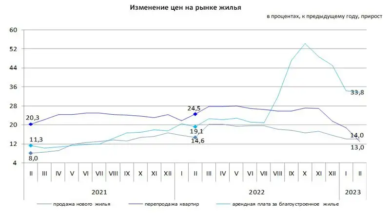 По информации Бюро национальной статистики, арендная плата за благоустроенное жилье в феврале 2023 года по сравнению с аналогичным месяцем прошлого года повысилась на 33,8%.