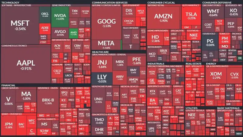 В начале основной торговой сессии в среду американские индексы пошли вверх. Однако после оглашения вердикта по ключевой ставке сначала ринулись выше, но потом обвалились. В красной зоне оказались все компании, включенные в списки NASE и NASDAQ только лишь за небольшим исключением.