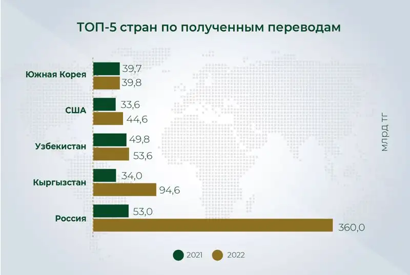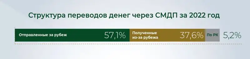 "Рост полученных через СМДП переводов денег в 2022 году был связан с ростом объемов переводов денег из России (рост в 6,8 раза), Кыргызстана (рост в 2,8 раза) и США (рост на 33%)".Пресс-служба НБК