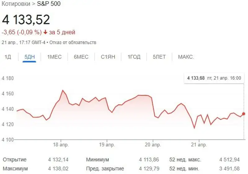 Индекс S&P 500 подорожал на 0,09% или на +3,73 пункта. За торговую пятидневку S&P стал дешевле на -0,09% или на -3,65 пункта.