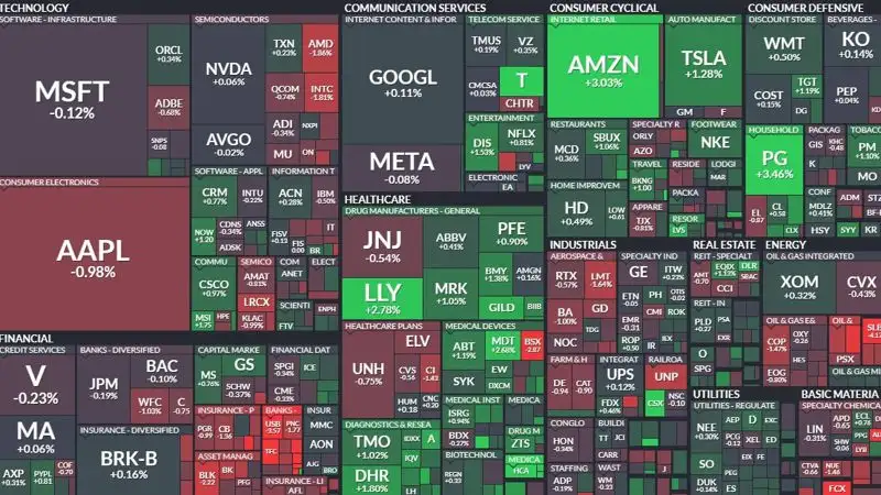 Лидерами роста стали Procter & Gamble Company (+3,46%) и Amazon (+3,03%).