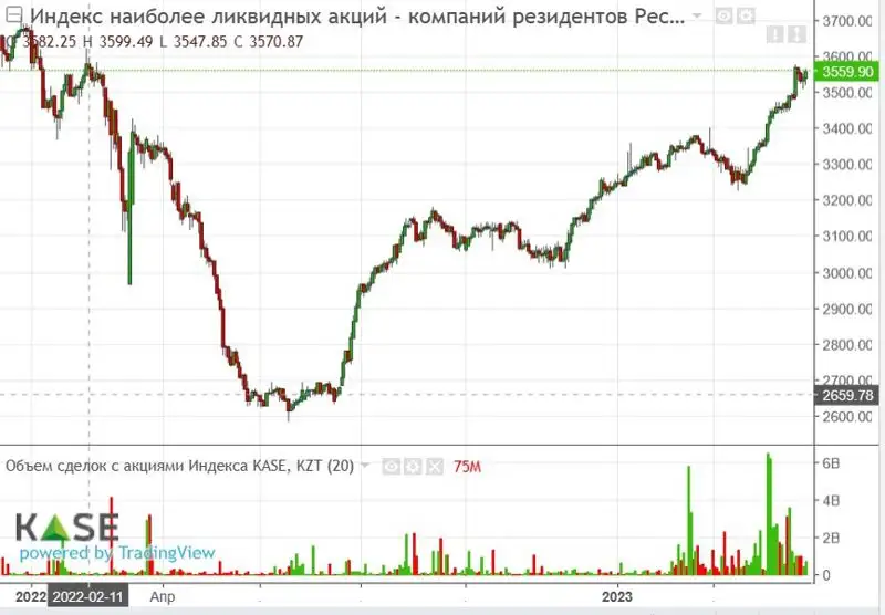 Индекс KASE за месяц вырос более чем на 90% в годовом выражении