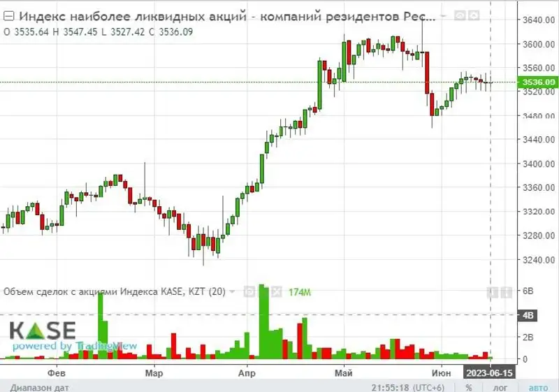 Увести вниз индекс KASE не дали бумаги Народного банка (тикер HSBK) и Казахтелекома (тикер KZTK). Их рост в четверг, составивший +1,0% и +0,9% соответственно, практически полностью нивелировал закрывшиеся в красной зоне долевые бумаги КазТрансОйла (-3,8%).